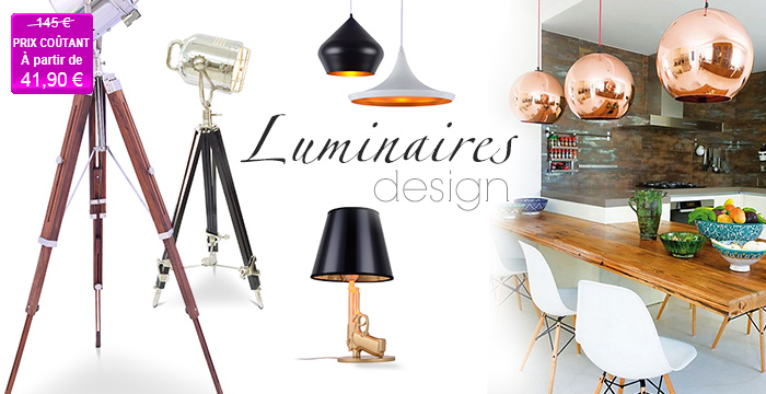 | LUMINAIRES DESIGN : Tripods, lampadaires phare, lampes trépieds, suspension | |||||