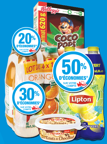 | Les promos s'invitent dans votre Drive ! | Madame, Monsieur, Jusqu'au 15 septembre, profitez de 20 à 50% d'économies sur vos produits du quotidien. Et à l'occasion de la rentrée, découvrez notre sélection de produits pour un goûter réussi ! | (1) Voir conditions en magasin ou en espace carte (2) Présentez votre Carte Auchan lors du paiement et bénéficiez des cagnottes créditées sur votre compte Waaoh ! sur les produits porteurs d'une offre signalés sur le site. Une offre s'entend même produit, même marque, même format avec la possibilité de choisir parmi les différentes variétés proposées. Chaque offre est limitée à 5 cagnottes par carte et par foyer sur la durée de l'opération. Cette limite est portée à 30 pour l'achat de bouteilles de vin ou de Champagne (soit 5 cartons de 6 bouteilles). Hors conditions particulières. Non cumulable avec toutes autres promotions en cours, dans la limite des stocks disponibles. Offre réservée aux particuliers porteurs de la carte Auchan ou carte de paiement Auchan. La carte Auchan est gratuite, vous pouvez la retirer en magasin. Les cartes de paiement Auchan sont attribuées sous réserve d'acceptation par Banque Accord. Cartes avec cotisation annuelle, utilisables au comptant ou à crédit, au choix lors du passage en caisse, associées à un crédit renouvelable d'un an. Un crédit vous engage et doit être remboursé. Vérifiez vos capacités de remboursement avant de vous engager. Voir Stand Accord en magasin. | |