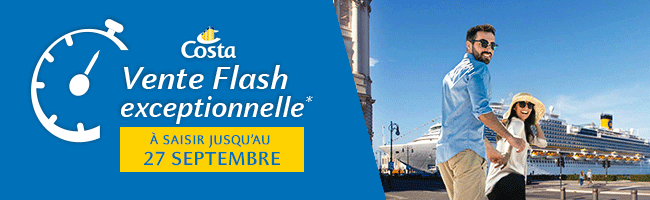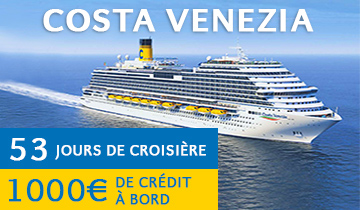 | | | | | | | | *Nos prix sont affichés en TTC et par personne (soit le prix de la croisière HT complété des taxes portuaires et/ou aéroportuaires): prix "à partir de" correspondant à la catégorie la plus simple proposée pour chaque type de cabines (intérieure, extérieure, avec balcon, et suite) et sous réserve de disponibilités. Les tarifs varient en fonction du navire, de la date de la croisière et de la catégorie de cabine. Ces tarifs n´incluent pas les frais de dossier et de dernière minute, ni les suppléments spécifiques susceptibles de s´appliquer à certaines croisières. Toutes les offres sont non rétroactives. Les prix indiqués correspondent aux tarifs en ligne sur notre site Internet à la date d’envoi de la présente lettre d’informations commerciale. Ils peuvent faire l’objet d’une actualisation suivant l’évolution de nos disponibilités. | | | | | | | La vente de voyages sous la marque abcroisiere.com est assurée par Karavel, 17 rue de l´Echiquier 75010 Paris - SAS au Capital de 145.131.987 euros - RCS PARIS B 532 321 916 - Immatriculation « Atout France » : IM075140042 - Garant: APS, 15 av Carnot, 75017 Paris - RCP : Hiscox, 19, rue Louis le Grand, 75002 Paris. | | | | | | **Du lundi au vendredi de 8h à 23h, le samedi de 9h à 23h, le dimanche de 10h à 23h (Appel non surtaxé) Afin de respecter les dispositions légales concernant les courriers électroniques. Vous disposez d’un droit d'accès, de modification, de rectification et de suppression des données qui vous concernent (articles 38 et suivants de la loi du 6 janvier 1978 relative à l´informatique, aux fichiers et aux libertés).