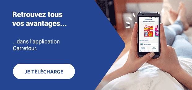 | Pour vous assurer de recevoir notre newsletter, nous vous recommandons d'ajouter l'adresse carrefour@email.carrefour.fr dans votre carnet d'adresses CARREFOUR HYPERMARCHES SAS au capital de 6 922 200 euros. BP 60075 - 91002 Evry Cedex. RCS Evry 451 321 335 Carrefour.fr utilise vos données pour le bon fonctionnement des services auxquels vous souscrivez et pour vous proposer des offres personnalisées en fonction de votre profil. Vos données sont aussi utilisées dans le cadre de la bonne gestion de notre relation clients, ainsi qu'à des fins d'études marketing et de communications. Conformément à la réglementation sur la protection des données à caractère personnel, vous bénéficiez d'un droit à l'information, d'accès, de rectification et de suppression des données, d'un droit d'opposition pour motif légitime ou pour tout traitement lié à la prospection commerciale, d'un droit à la limitation du traitement, et d'un droit lié à la portabilité de vos données ainsi que du droit de définir des directives relatives au sort de vos données après votre décès, qui s'exercent en écrivant depuis votre espace "Mon compte" ou en contactant Carrefour Service Clients à l'adresse e-mail droitsdespersonnes@serviceclients-carrefour.com. Pour vous abonner, vous désabonner et gérer vos données personnelles, suivez ce lien. | |