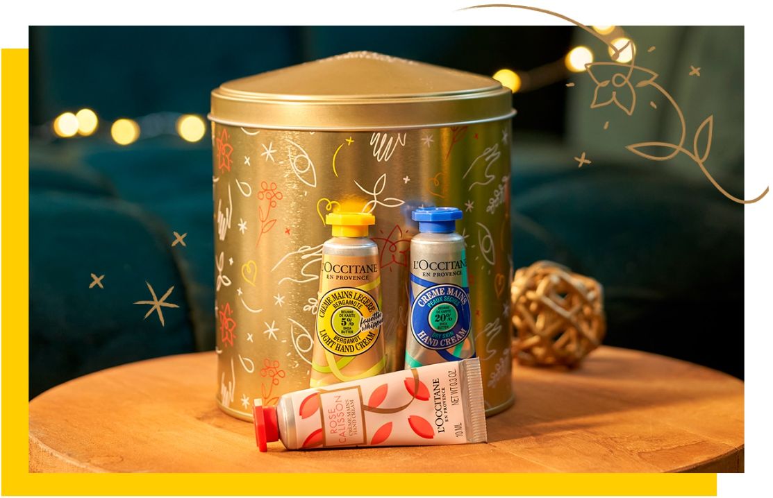 | *Offre valable du 14/10/2020 au 24/11/2020 inclus en boutique et du du 14/10/2020 au 05/01/2021 inclus sur le site fr.loccitane.com , dès 15€ d'achat L'OCCITANE, dans la limite des stocks disponibles. Pour profiter de l'offre, présentez cet email en boutique ou entrez le code HANDCARE dans la partie code promotionnel de votre panier. Votre offre contient : une Crème Mains Karité Edition Limitée 10ml, une Crème Mains Karité Bergamote 10ml, une Crème Mains Parfumée Rose Calisson 10ml, une jolie boite dorée. **Prix valables jusqu'au 5/01/2021 (1) Votre Calendrier de l'Avent Kiosque Provençal contient : un Gel Douche Verveine 30ml, une Crème Ultra Désaltérante Aqua Réotier 5ml, un Masque Capillaire SOS Lumière 20ml, une Crème Précieuse 5ml, un Masque Capillaire SOS Hydratation Gel-Crème 20ml, un Shampoing 5 Huiles Essentielles 35ml, un Savon aux Feuilles de verveine 25g, une Huile de Douche Nettoyante et Adoucissante 35ml, une Crème Mains Fleurs de Cerisier 10ml, un Crème Mains Amande 10ml, une Crème Confort Légère Karité 5ml, un Baume Lèvres Ultra Riche Karité 4ml, un Baume Mains Intenses Karité 10ml, une Crème Mains Peaux Sèches 10ml, un Gel Crème Fraîcheur des Mains 10ml, une Crème Mains Récolte de miel 10ml, une Crème Ultra Riche Corps Karité 20ml, un Savon Extra-Doux Lait Karité 25g, un Après Shampoing 5 Huiles Essentielles 35ml, une Crème Pieds Karité 10ml, un Shampoing Micellaire Equilibre et Douceur 35ml, un Lait Corps Amande 35ml, un Reset Nuit Huile-en-Sérum 5ml, une Crème Mains Rose 10ml. (2) Votre Calendrier de l'Avent Écrins de Noël contient : une Huile de Douche Nettoyante et Adoucissante 50ml, un Gel Ultra Désaltérant Aqua Réotier 20ml, un Shampoing Amande 75ml, un Baume Lèvres Ultra Riche Karité 4ml, une Eau de Parfum Herbaé 5ml, une Gelée Nettoyante Aqua Réotier 40ml, un Shampoing Micellaire Equilibre et Douceur 35ml, une Eau Micellaire 3-en-1 30ml, un Baume Mains Intense 10ml, une Crème Mains Récolte de Miel 10ml, une Crème Mains Fleur de Cerisier 10ml, un Fluide énergisant Cade 10ml, un Gommage Muesli Croustillant Amande 15g, un Masque Capillaire SOS Lumière 20ml, un Masque Capillaire SOS Hydratation Gel-Crème 20ml, une Crème Confort Légère Karité 5ml, une Crème Mains Peaux Sèches Karité 30ml, un Petit Remède Baume Cosmétique 6g, une Crème Immortelle Divine 4ml, un Lait Corps Amande 75ml, une Crème Visage Précieuse 5ml, une Crème Ultra Désaltérante Aqua Réotier 5ml, un Reset Nuit Huile-en-Sérum 5ml, une Brume d'Oreiller Relaxante 15ml. |