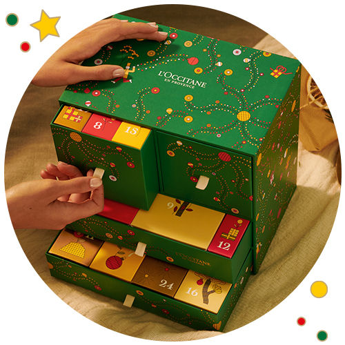 | *Offre valable du 13/10/2021 au 04/01/2022 inclus, dès 15€ d'achat L'OCCITANE sur le site fr.loccitane.com, dans la limite des stocks disponibles. Pour profiter de l'offre, entrez le code MAINS21 dans la partie code promotionnel de votre panier. Votre offre contient : une Crème Mains Karité Edition Limitée 10ml, une Crème Mains Karité Promenade D'hiver10ml, une Crème Mains Rose 10ml et une jolie boite exclusive L'OCCITANE. (1) Votre Calendrier de l'Avent Beauté - La Fabrique à Cadeaux contient : un Gel Crème Fraîcheur des Mains Verveine 10ml, un Lait Corps Verveine 30ml, une Huile de Douche Amande 50ml, un Shampoing Amande 50ml, une Crème Visage Immortelle Précieuse 5ml, une Crème Mains Fleurs de Cerisier 10ml, un Gel Douche Verveine 30ml, un Savon Extra-Doux Lait Karité 25g, un Après Shampoing Amande 50ml, une Crème Ultra Désaltérante Aqua Réotier 5ml, une Crème Mains Amande 10ml, un Savon aux Feuilles de Verveine 25g, une Crème Pieds Karité 10ml, un Shampoing 5 Huiles Essentielles 35ml, une Crème Confort Légère Karité 5ml, une Crème Mains Rose 10ml, un Gel Douche Verveine Agrumes 35ml, un Baume Lèvres Beurre de Karité 2gr, un Après Shampoing 5 Huiles Essentielles 35ml, une Huile-en-Sérum Immortelle Reset Nuit 5ml, un Baume Mains Intense Karité 10ml, un Lait Corps Verveine Agrumes 35ml, une Crème Mains Récolte de Miel 10ml et une Crème Mains Karité 75ml. (2) Votre Calendrier de l'Avent 2021 - Ecrins de Noël contient : une Crème Mains Karité 30ml, un Shampoing Micellaire Equilibre et Douceur 35ml, un Lait-en-Huile Démaquillant Visage 30ml, une Huile de Douche Corps Karité 35ml, une Mousse Douceur Fleurs de Cerisier 35ml, une Crème Mains Délice de Rose 10ml, une Crème Immortelle Précieuse 8ml, un Rouge de Fruit - Nude Infusion 2,8gr, un Gommage Muesli Croustillant Amande 15gr, une Eau de Parfum Herbaé par L'OCCITANE 5ml, une Crème Mains Récolte de Miel 10ml, un Savon Extra-Doux Lait 25gr, un Baume Perfecteur 2,8gr, un Lait Corps Amande 50ml, un Lait Perle Fleurs de Cerisier 35ml, un Baume Mains Intense 10ml, un Shampoing 5 Huiles Essentielles 35ml, une Huile-en-Sérum Immortelle Reset Nuit 5ml, une Huile de Douche Amande 50ml, un Gel Douche Verveine 30ml, une Crème Mains Fleurs de Cerisier 10ml, un Après-Shampoing 5 Huiles Essentielles 35ml, une Crème Visage Immortelle Divine 4ml et un Petit Remède Baume Cosmétique 15gr. (3) Votre Calendrier de l'Avent 2021 - Infiniment Provence contient : une Huile de Douche Amande 75ml, une Eau de Parfum Herbaé par L'OCCITANE 5ml, un Baume Mains Intense 10ml, un Savon Amande 50gr, une Crème Mains Karité 30ml, un Gel Ultra Désaltérant Aqua Réotier 5ml, un Après-Shampoing Réparation Intense Aromachologie 75ml, un Masque de Nuit Immortelle Précieuse 8ml, un Lait Perle Fleurs de Cerisier 35ml, un Bain Moussant Lavande 100ml, une Brume d'oreiller relaxante Cocon de Sérénité 15ml, un Concentré de Lait Amande 50 ml, une Eau de Toilette Verveine 10ml, une Crème Visage Immortelle Divine 8ml, un Shampoing Réparation Intense Aromachologie 75ml, une Crème Mains Néroli & Orchidée 30ml, un Rouge de Fruit - Provence Sunset 2.8gr, une Eau Micellaire 3en1 Infusion 30ml, une Crème Immortelle Précieuse 8ml, une Huile Jeunesse Immortelle Divine 4ml, une Crème Pieds Karité 30ml, une Huile-en-Sérum Immortelle Reset Nuit 5ml, un Baume Lèvres Ultra Riche Karité 12ml et un Petit Remède - Baume cosmétique 15g. |
