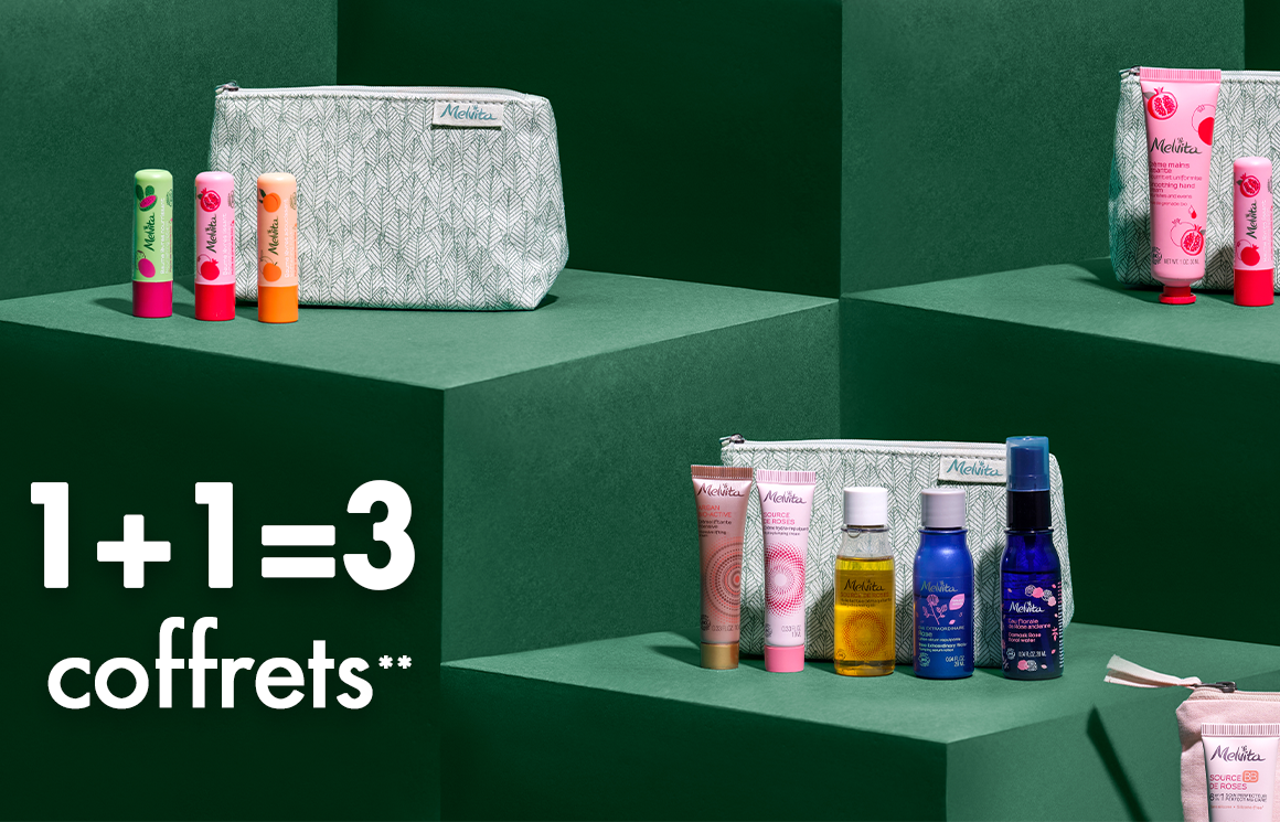 | Pour toute question, notre Service Clients est à votre écoute du lundi au vendredi, de 9h à 18h, par email à contact.fr-fr@melvita.fr ou par téléphone au 04 75 37 09 48 (coût d'un appel local). *Livraison standard offerte dès 35€ d'achat avec le code : NOEL . Offre valable une seule fois par commande et par client sur fr.melvita.com du 05/12/2022 au 18/12/2022 inclus, cumulable avec les autres offres promotionnelles. **Parmi une sélection, pour 2 coffrets achetés le troisième est offert (le moins cher des trois) avec le code SANTA22. Offre valable une seule fois par commande et par client sur fr.melvita.com avec le code SANTA22 du 29/11/2022 au 27/12/2022 18h, dans la limite des stocks disponibles. Offre non cumulable avec les offres promotionnelles en cours sauf avec le code NOEL. Visuels non contractuels. Vous disposez d'un droit d'accès, de rectification, d'opposition, de portabilité, de limitation et de suppression de vos données personnelles auprès de Melvita, responsable de traitement. Pour les exercer, contactez-nous par email (contact.fr-fr@melvita.fr) ou par courrier au Service Client (Melvita Service Client, 108 rue de Richelieu, 75 002 Paris). Pour plus d'informations, veuillez consulter notre Politique de Protection de Données Personnelles. Des technologies d'analyses nous permettent, lorsque vous interagissez avec nos contenus, de comprendre votre intérêt pour nos offres et de les améliorer (consulter notre Charte cookies). Pour recevoir tous nos emails, ajoutez contact@melvita.fr à votre carnet d'adresses. Si vous ne souhaitez plus recevoir d'emails de la part de Melvita, vous pouvez vous desabonner en cliquant ici. |