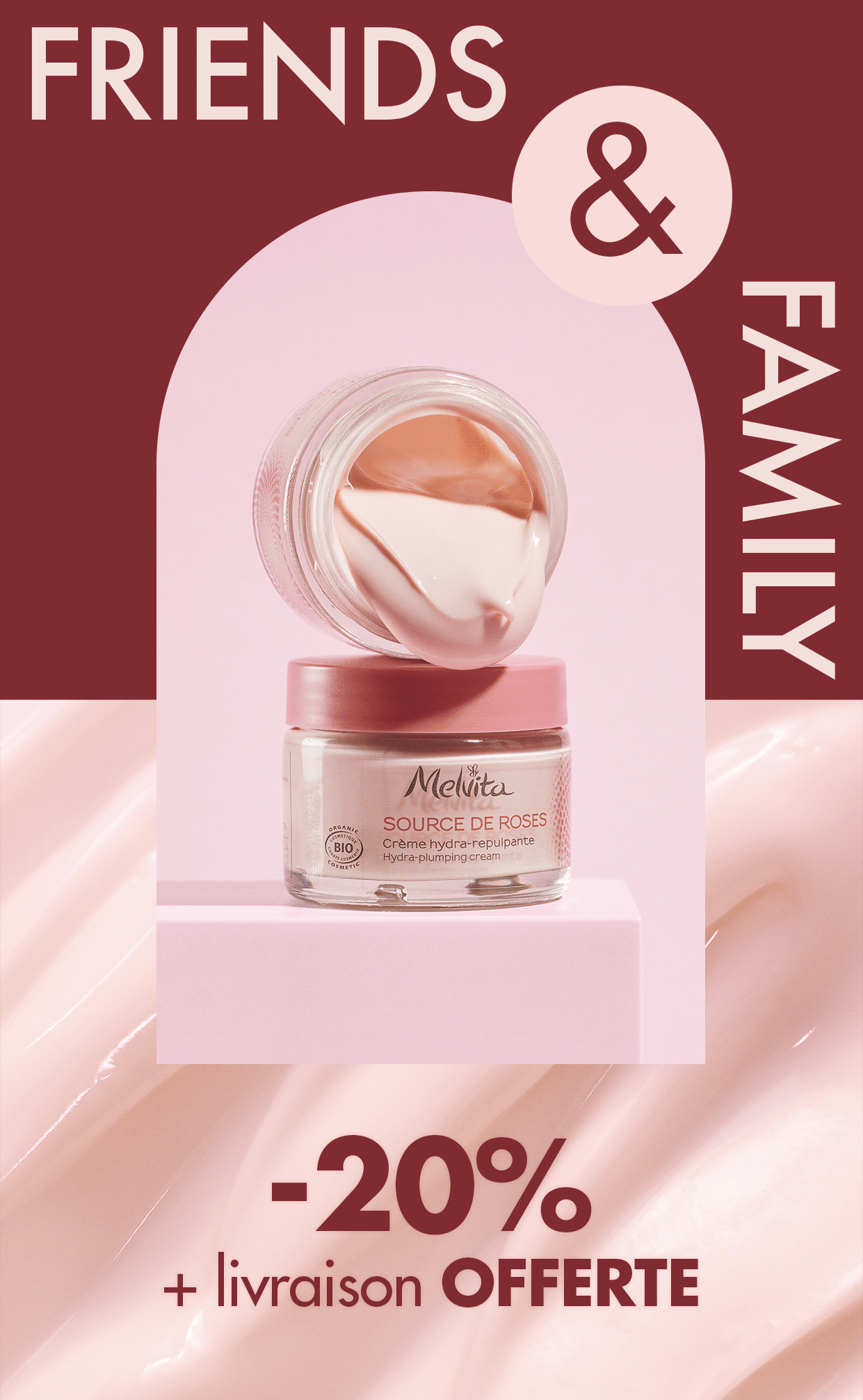 | Pour toute question, notre Service Clients est Ă votre Ă©coute du lundi au vendredi, de 9h Ă 18h, par email Ă contact.fr-fr@melvita.com ou par tĂ©lĂ©phone au 04 75 37 09 48 (coĂ»t d'un appel local). *-20% sur tout ( hors produits dĂ©jĂ remisĂ©s et coffrets ) et votre livraison standard offerte sans minimum d'achat. Offre valable, une seule fois par commande et par client sur fr.melvita.com avec le code FF20 du 22/05/23 au 30/05/23 minuit. Offre non cumulable avec les offres promotionnelles en cours. Visuels non contractuels. * Votre routine hydratation offerte dĂšs 70€ d'achat avec le code HYDRA. Votre routine se compose d' : une jolie trousse verte Melvita, une mini eau florale de rose Ă l'ancienne de 28ml, et une mini huile dĂ©maquillante Source de Roses de 30ml, une mini crĂšme hydra repulpante Source de Roses de 10ml et une mini eau extraordinaire de rose intense bio de 28ml. Offre valable une seule fois par commande et par client sur fr.melvita.com avec le code HYDRA du 09/05/2023 au 06/06/2023, dans la limite des stocks disponibles. Offre non cumulable avec les autres offres promotionnelles en cours. Visuels non contractuel. *Votre baume le Rouge Français et 1 mini soin visage offert dĂšs 40€ d'achat avec le code BAUME. Offre valable une seule fois par commande et par client sur fr.melvita.com avec le code BAUME du 22/05/2023 au 10/06/2023 inclus, dans la limite des stocks disponibles. Offre non cumulable avec les autres offres promotionnelles en cours. Visuels non contractuels. Vous disposez d'un droit d'accĂšs, de rectification, d'opposition, de portabilitĂ©, de limitation et de suppression de vos donnĂ©es personnelles auprĂšs de Melvita, responsable de traitement. Pour les exercer, contactez-nous par email (contact.fr-fr@melvita.com) ou par courrier au Service Client (Melvita Service Client, 108 rue de Richelieu, 75 002 Paris). Pour plus d'informations, veuillez consulter notre Politique de Protection de DonnĂ©es Personnelles. Des technologies d'analyses nous permettent, lorsque vous interagissez avec nos contenus, de comprendre votre intĂ©rĂȘt pour nos offres et de les amĂ©liorer (consulter notre Charte cookies). Pour recevoir tous nos emails, ajoutez contact@melvita.fr Ă votre carnet d'adresses. |